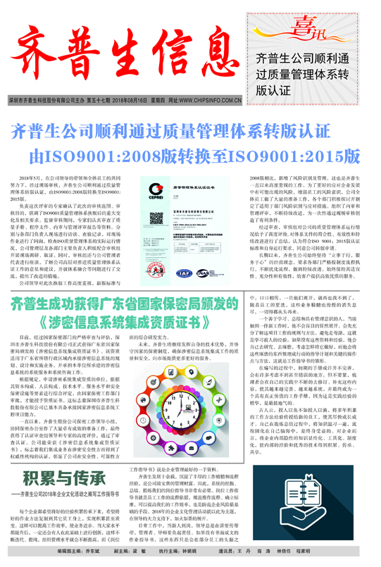 齊普生成功獲得廣東省國家保密局頒發(fā)的 《涉密信息系統(tǒng)集成資質(zhì)證書》