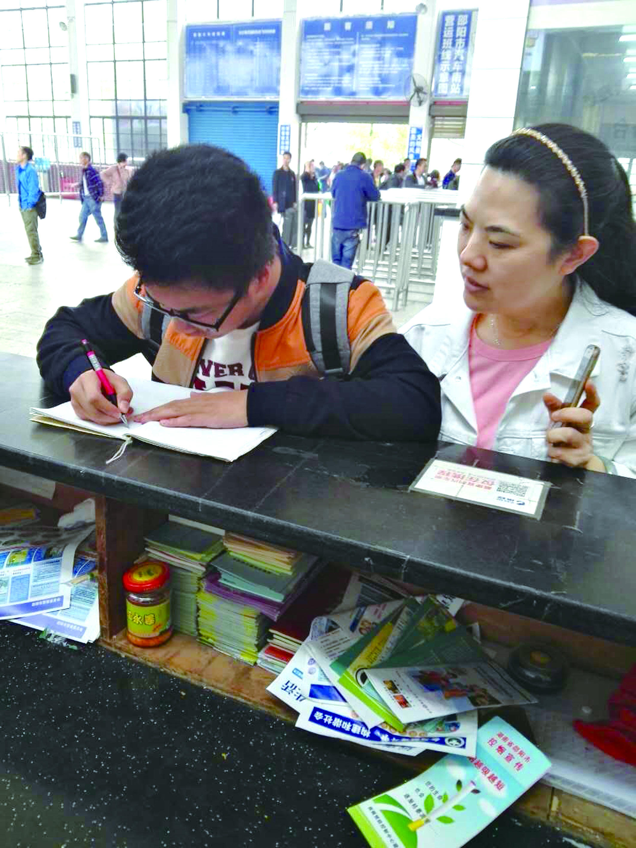 (徐容芳報道) 4月6日上午,市汽車南站的客流高峰還在持續(xù),售票廳買票上車的旅客絡(luò)繹不絕,正在安檢機前值班的員工周擁軍有條不紊的指揮著購票進站的旅客把大包小包的行李過機安檢。11時許,旅客漸漸稀少,周擁軍拿起桌上的杯子想喝口水,這時他卻無意中發(fā)現(xiàn)安檢機傳送帶旁有一個背包在地上。于是,周擁軍撿起趕緊喊剛過去的幾個旅客,但都說不是他們的,周擁軍趕緊將包拿到該站總服務(wù)臺,廣播員連續(xù)廣播失物認領(lǐng)七八次仍沒人領(lǐng)取。12時左右,一學(xué)生模樣的大男孩匆匆來到服務(wù)臺認領(lǐng)自己的背包,在確認旅客身份后,值班副站長張紅文把包交還給了此男孩,其非常感激連說謝謝,并從包里拿出紙和筆來,伏在服務(wù)總臺匆匆寫了一封感謝信,才登上了發(fā)往長沙西站的班車。